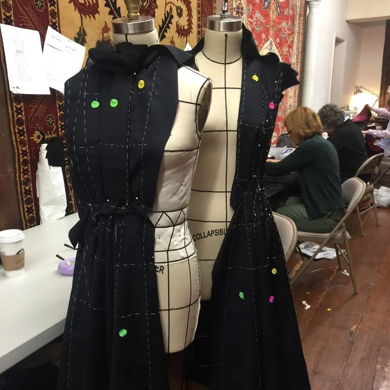 Marion was such a dark horse last week, we all saw the silk snakeskin and raved, knew she was making a dress and loved the silhouette...... and then on one of the last days, the lace appeared, organza was tea dyed and we were all just blown away with her vision, (and thankfully right before I left she so nicely put it on for me so I could take pictures!)
