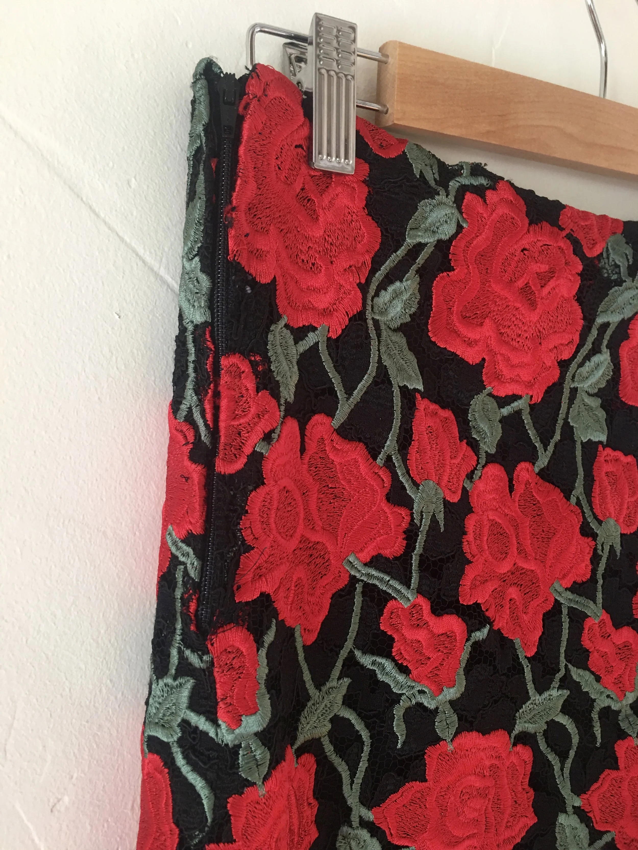 And then I hand sewed an all purpose zipper in, and added a couple of stray flowers to the center front seam to break up the line.