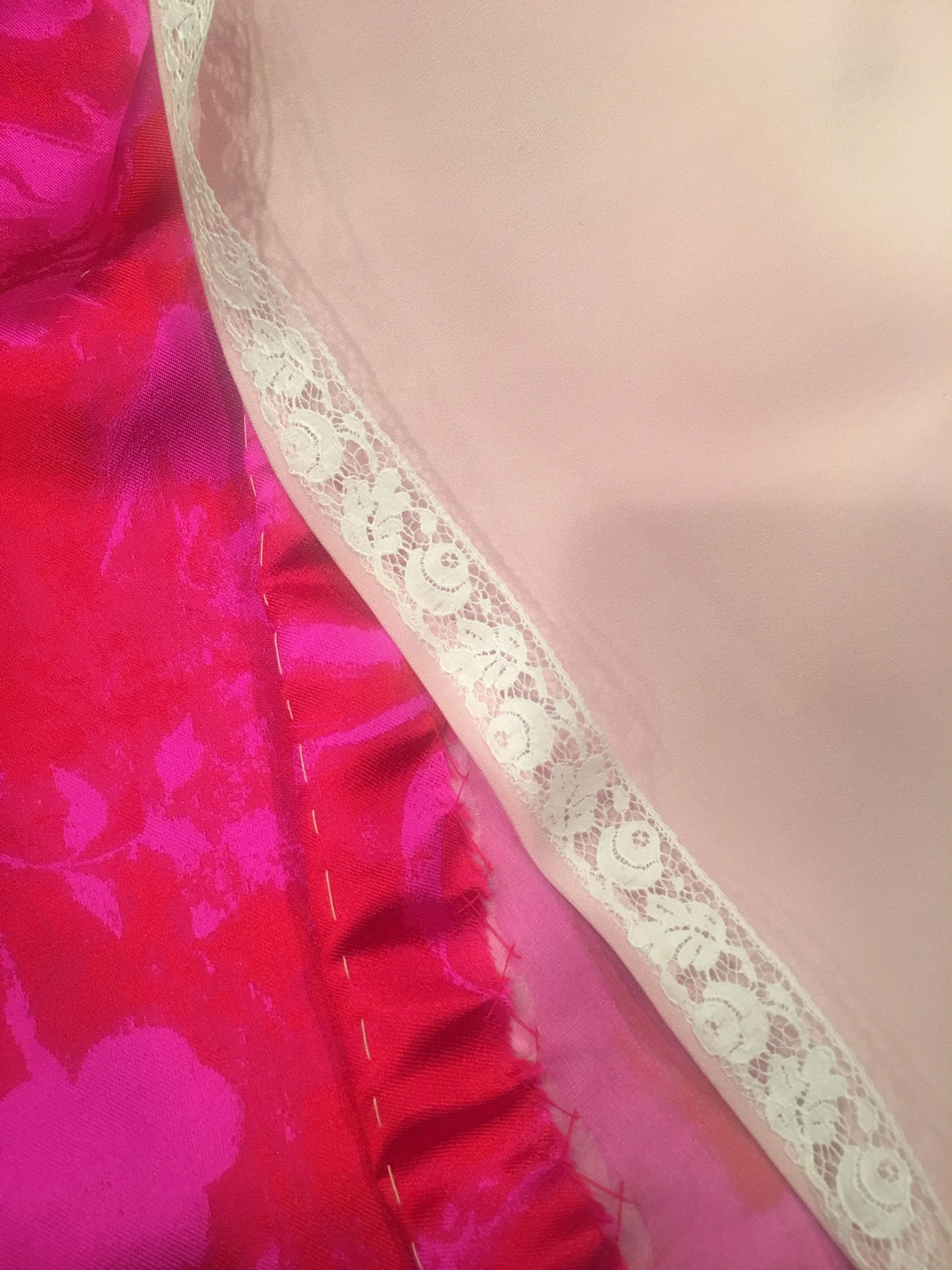 and as it was my first attempt, I'd had some idea that I would attach the lace to the lining, so I made a couple of really well fitted 6 ply silk shells..