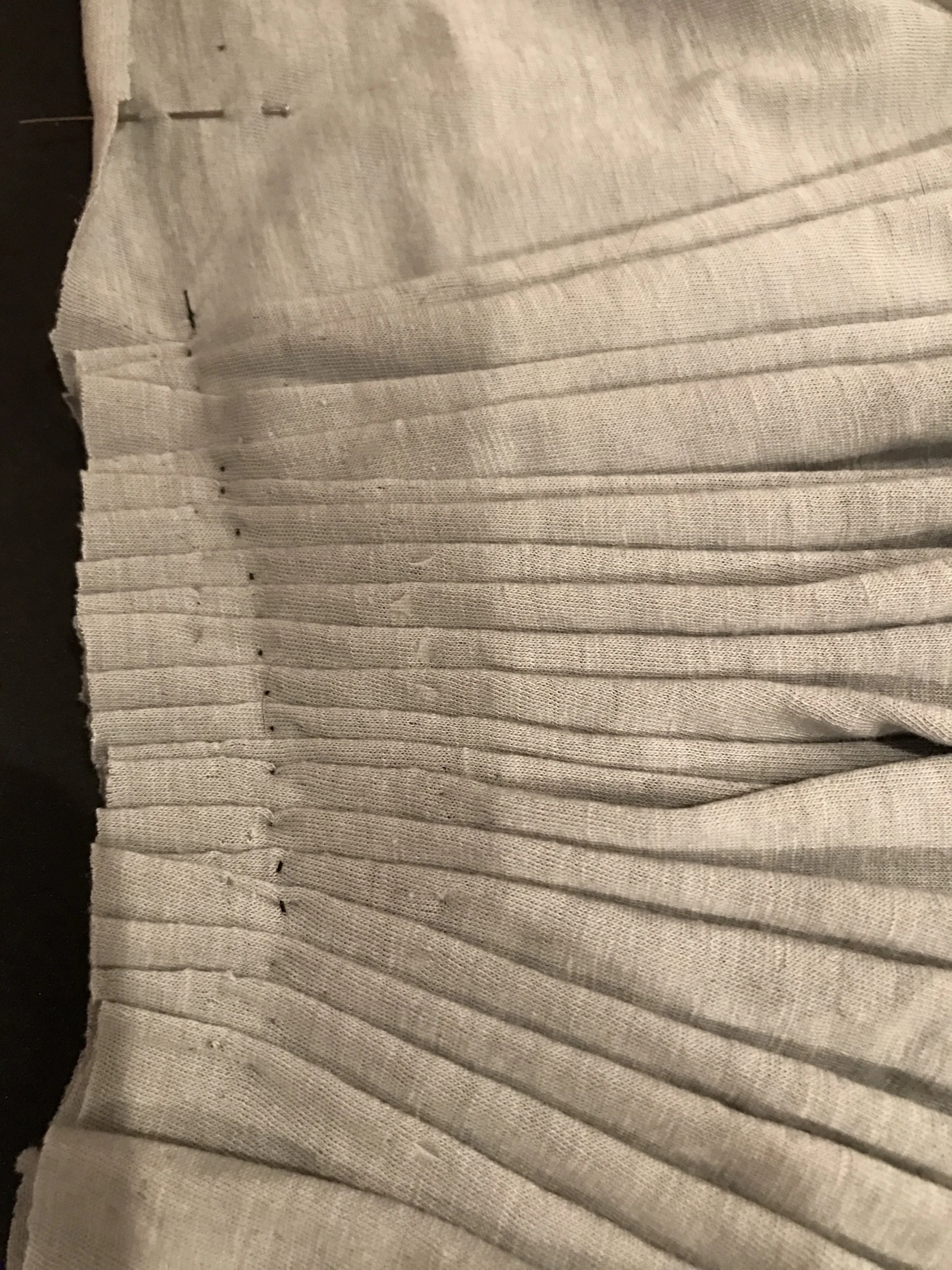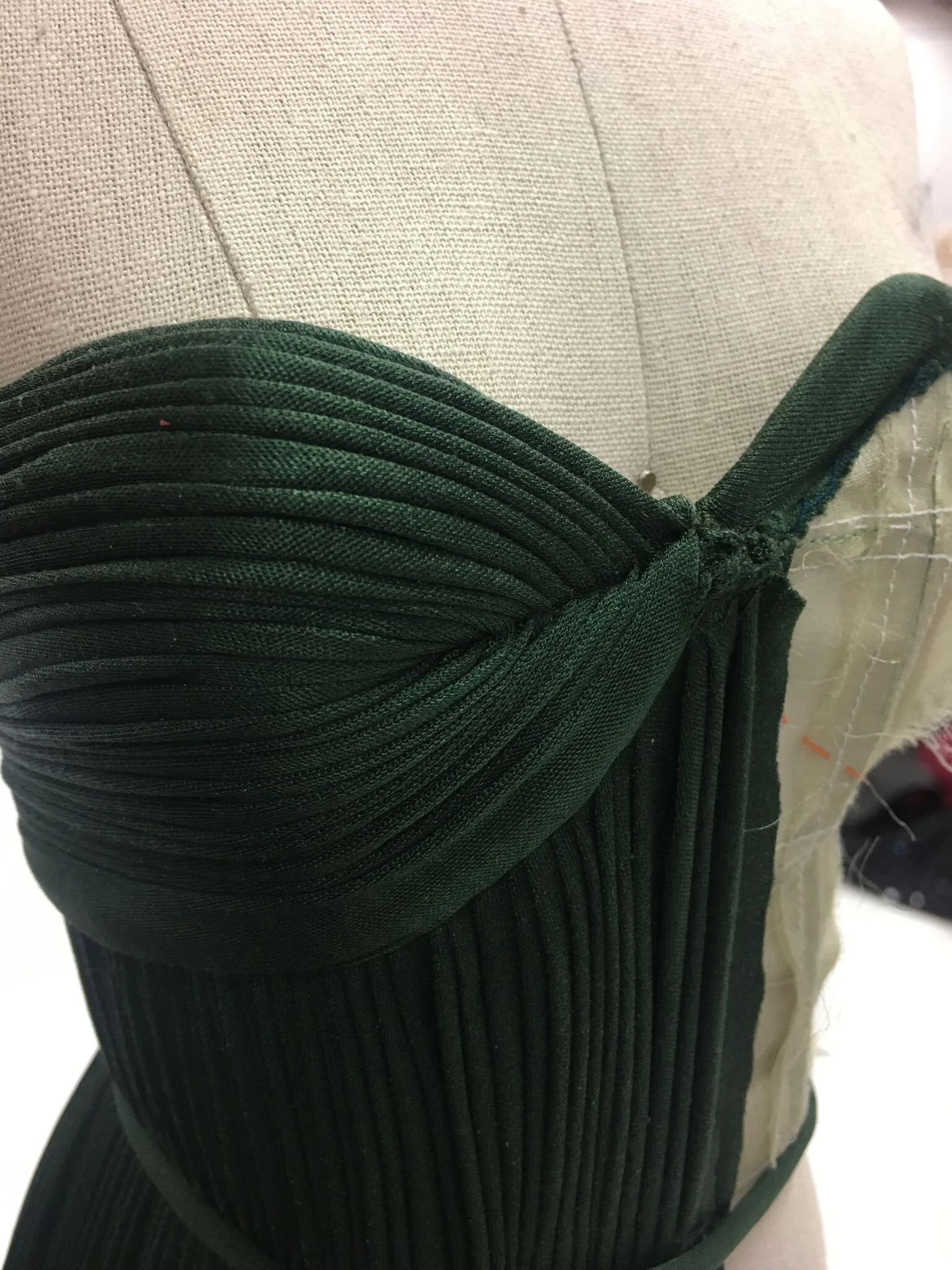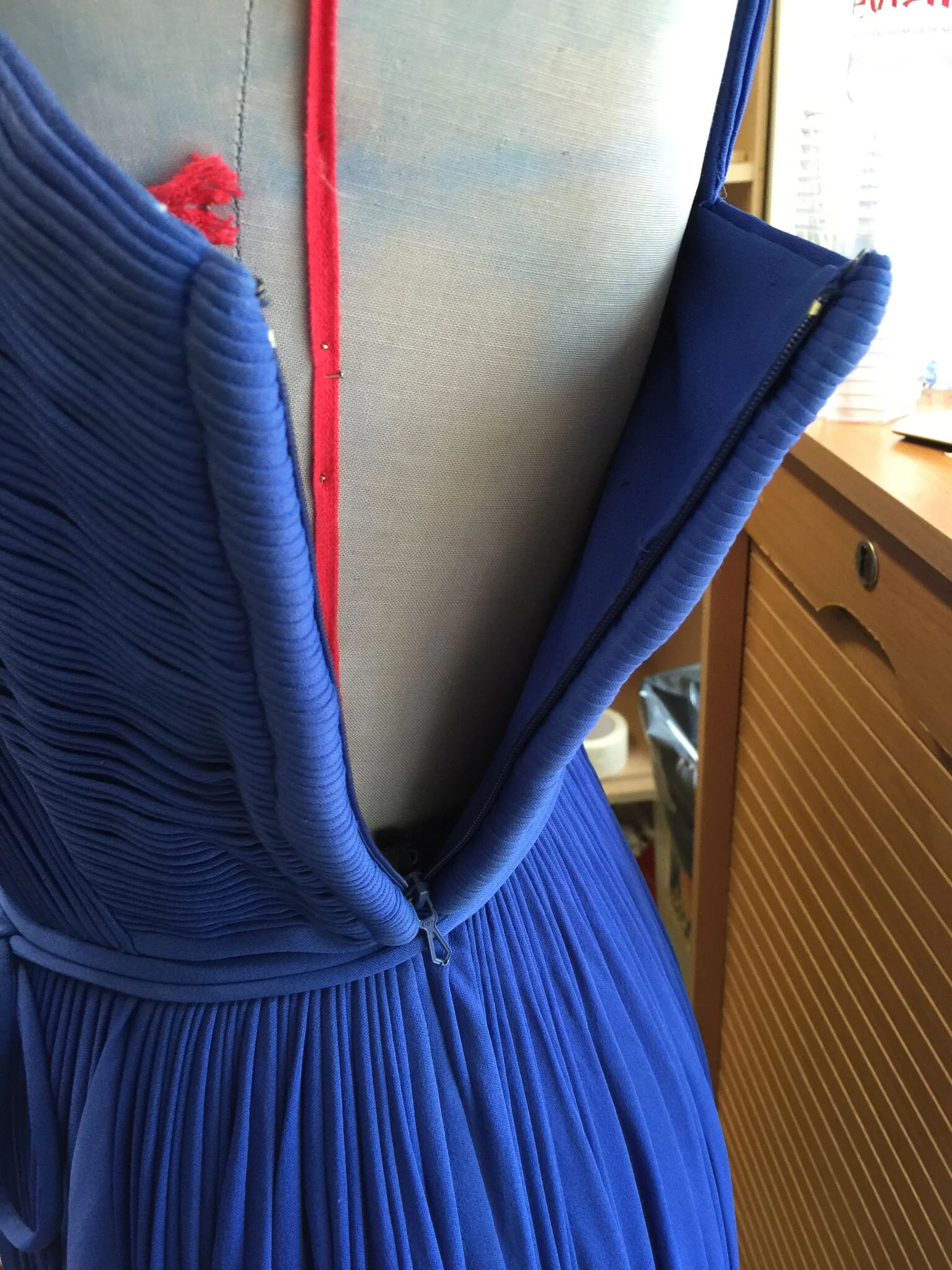 and the pleat should ideally be no wider than 1/8". Unbelievably Mme Grès could condense up to three yards of her specially designed fabric down to approx 3" or less.