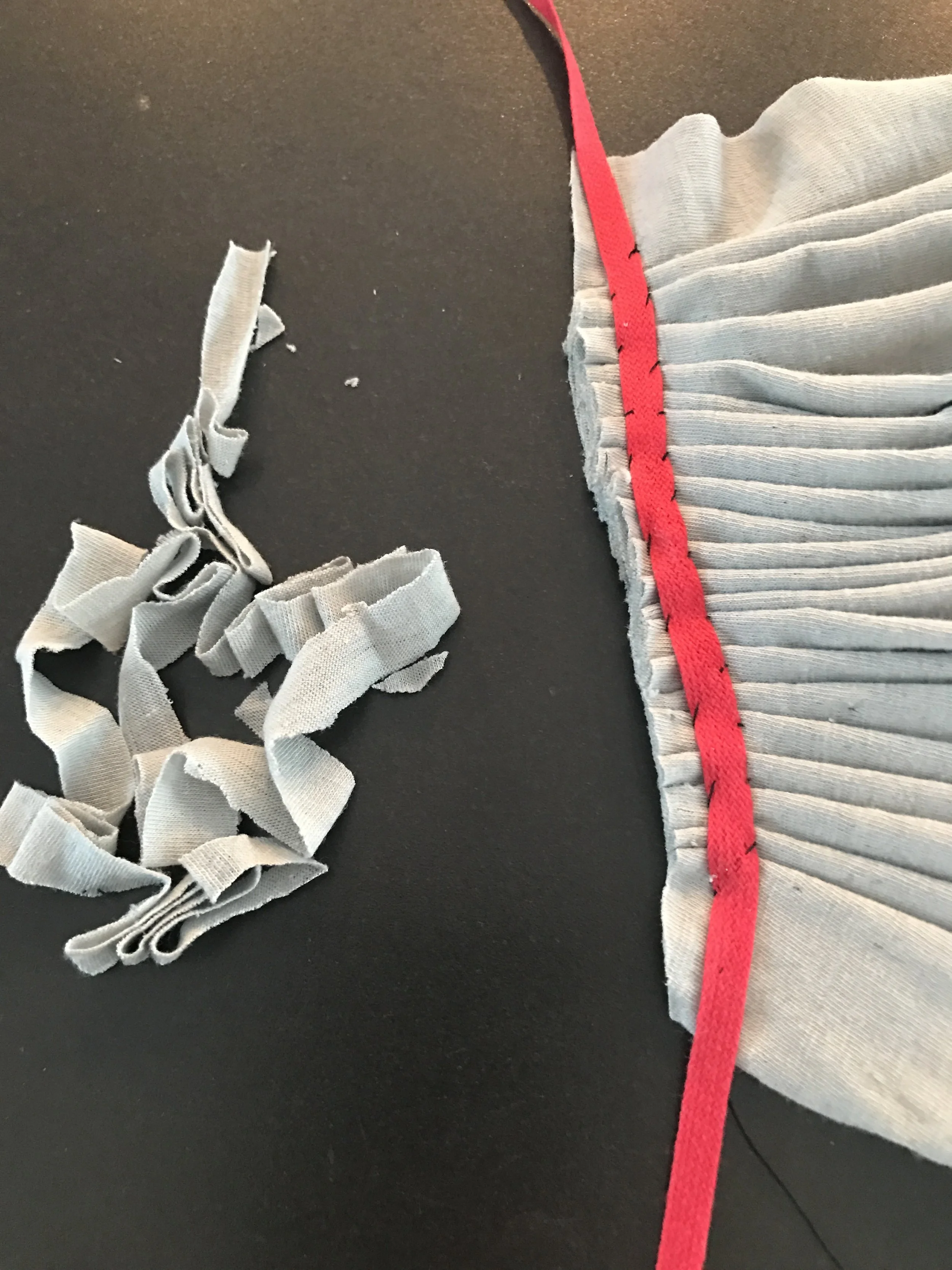 I've recreated the very roughest example of how the skirt is constructed because I was concentrating so hard on the techniques that I completely forgot to take pictures past the first step while I was there!