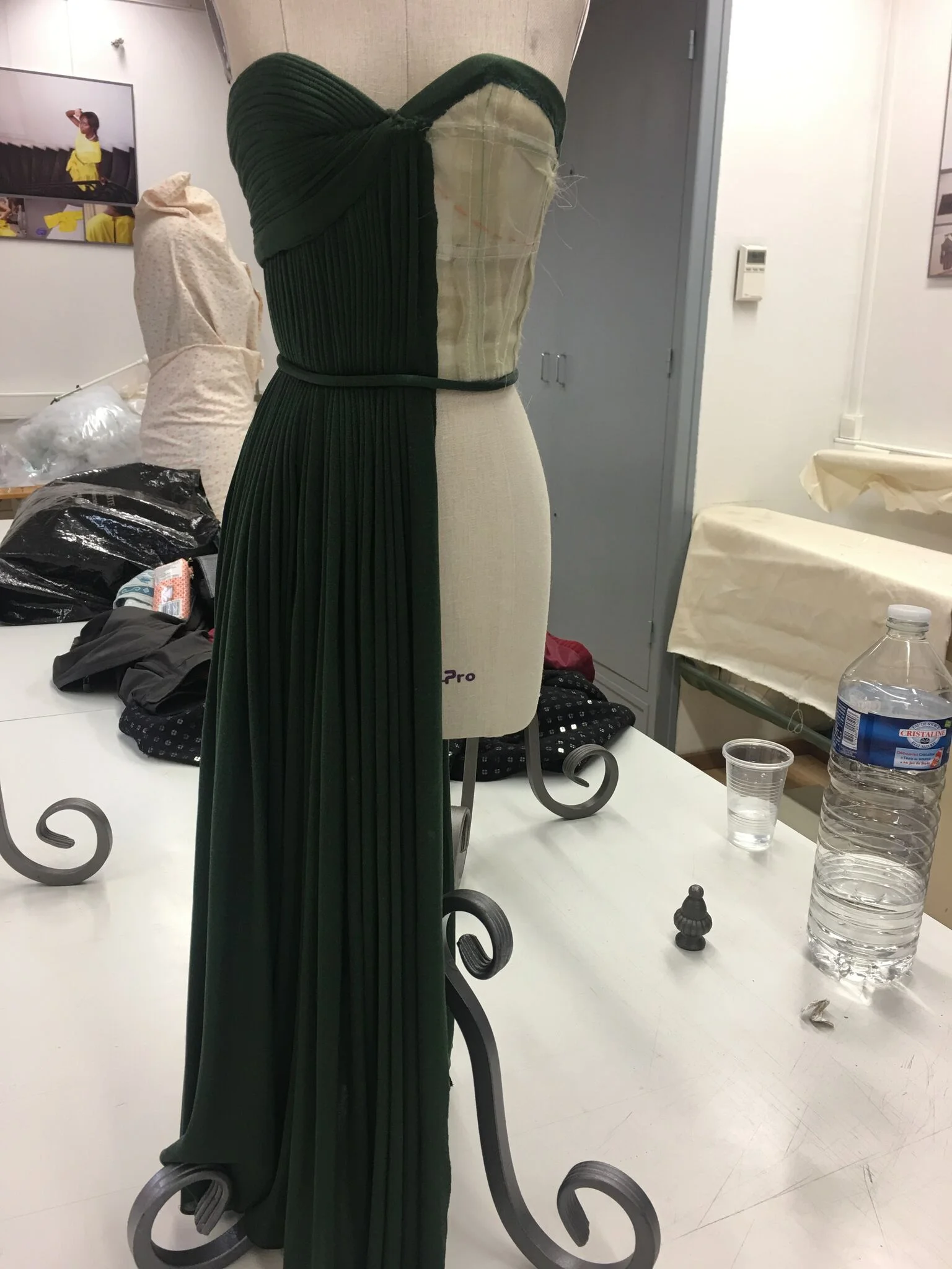 While there in 2014, we spent the day creating a small sample section of pleating for the bodice of a dress or top, using dress forms, paper and curved needles. This is the only way to achieve the secure and tiny pleats on the jersey and while it was incredibly tricky and technical, it was also so inspiring as I had never imagined that fabric could be molded and manipulated in such ways before.