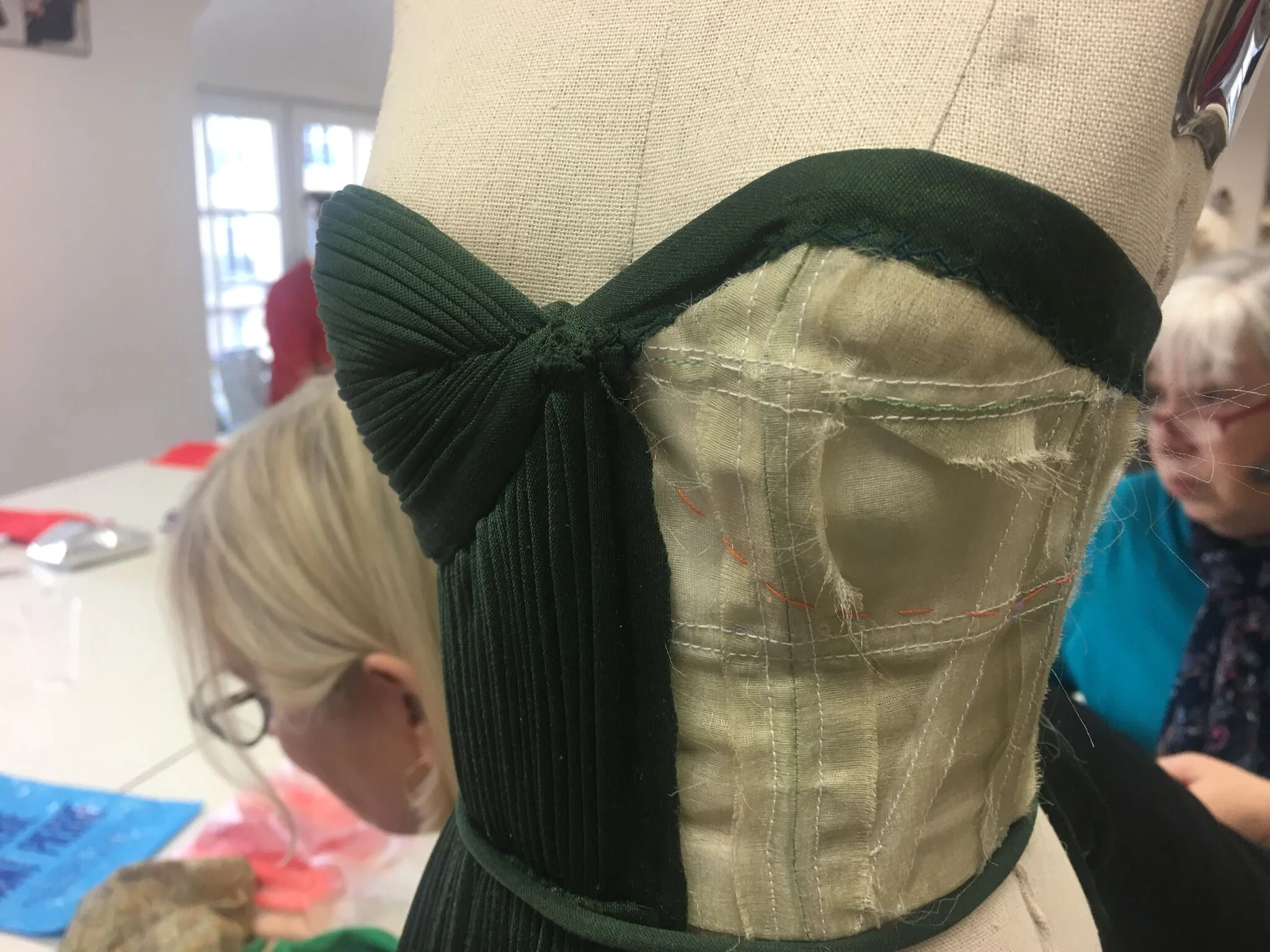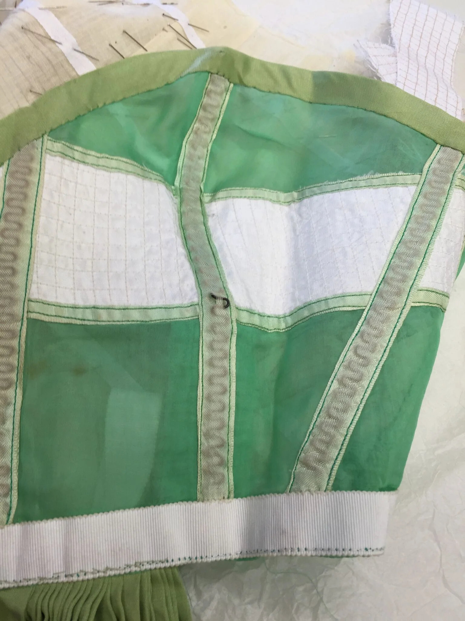 I have no excuses as Mme Picco was very kind and gracious while we were there, and took time to explain to Susan and I exactly how this bodice was achieved, (not how you'd think!) so I do at least have some working idea...