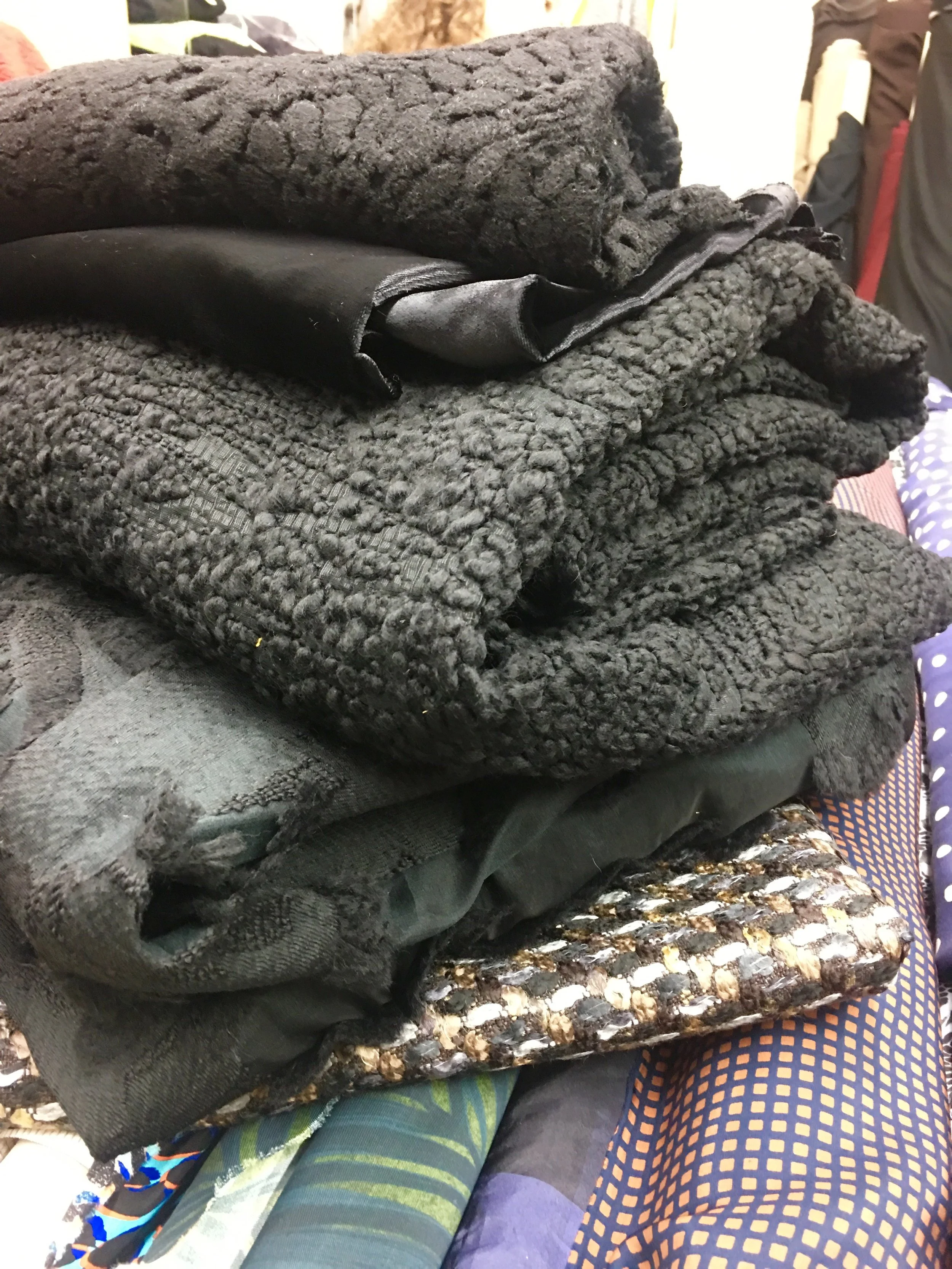 First stop is always to the amazing General Diff's in Paris - where of course, I found so much I wanted (and the exchange right was SO good!) but I eventually left with only five carefully considered fabric's instead - coupe de fil boucle and lace, guipure and one yard of silk velvet.