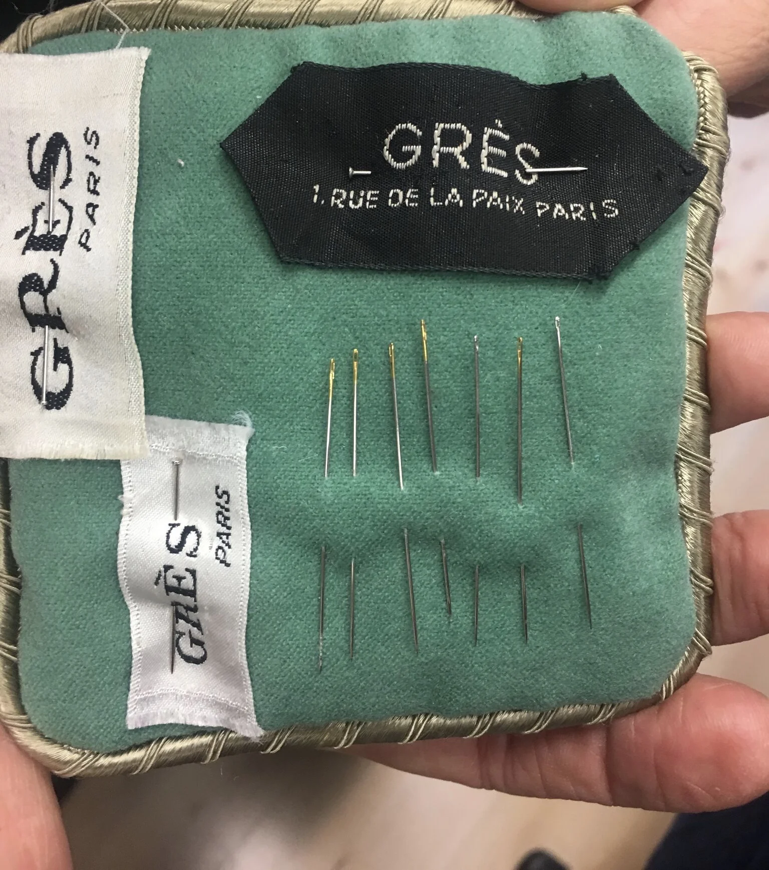And one last picture, below is an original pin cushion from the House of Grès with their black Haute label and Couture labels.