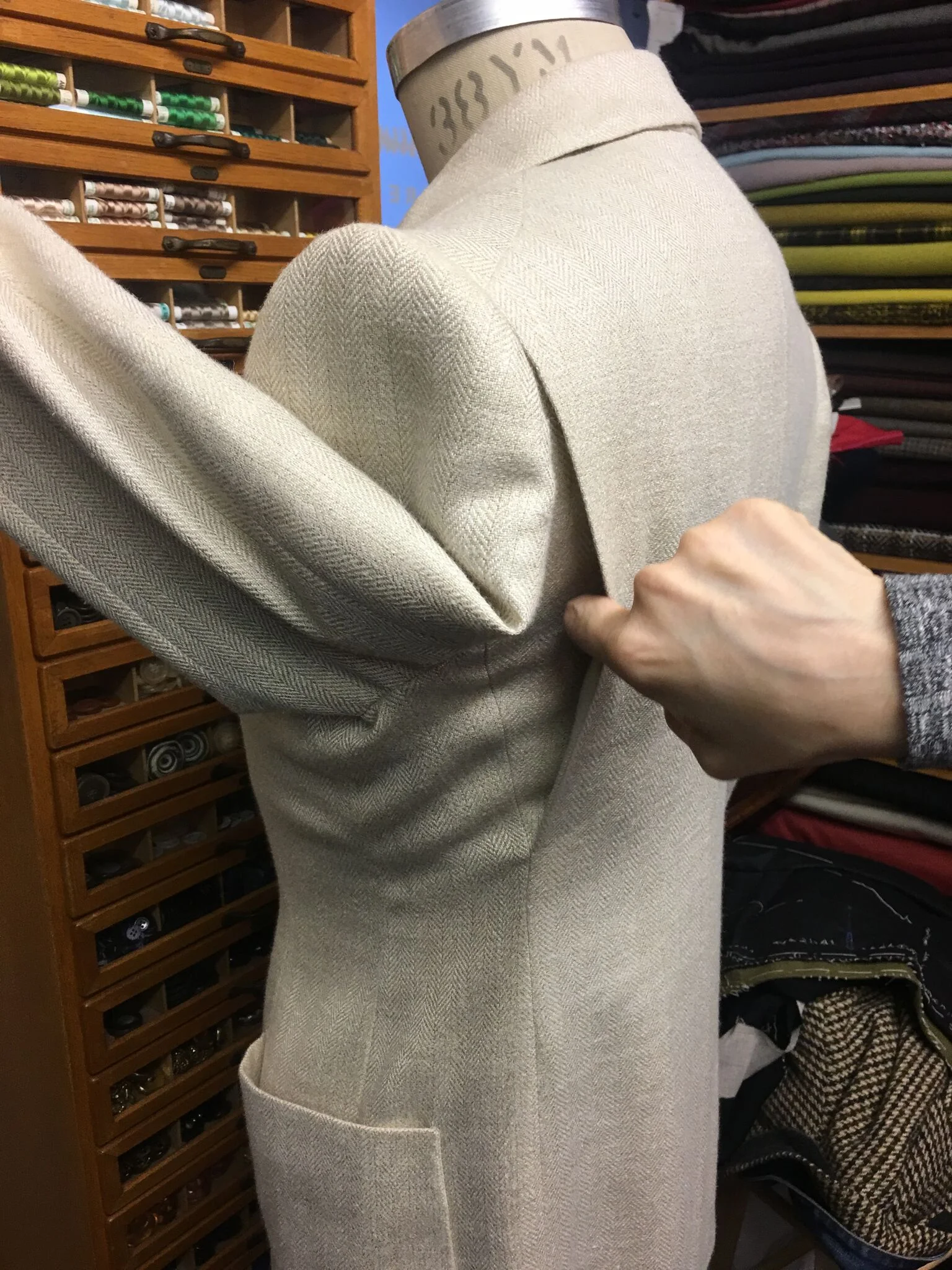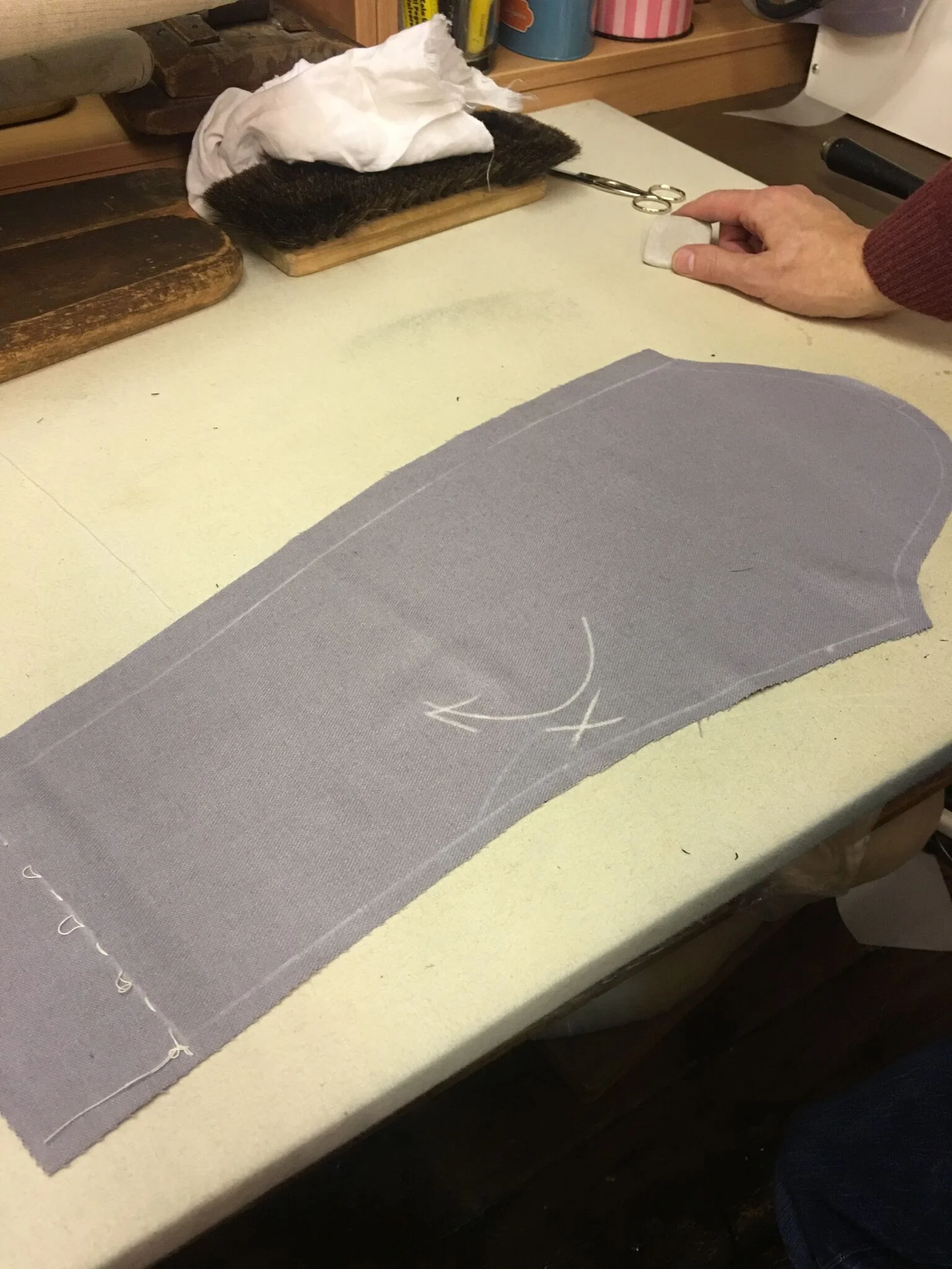 Using a chain stitch to ease the armseye before steaming... (completely amazing!)