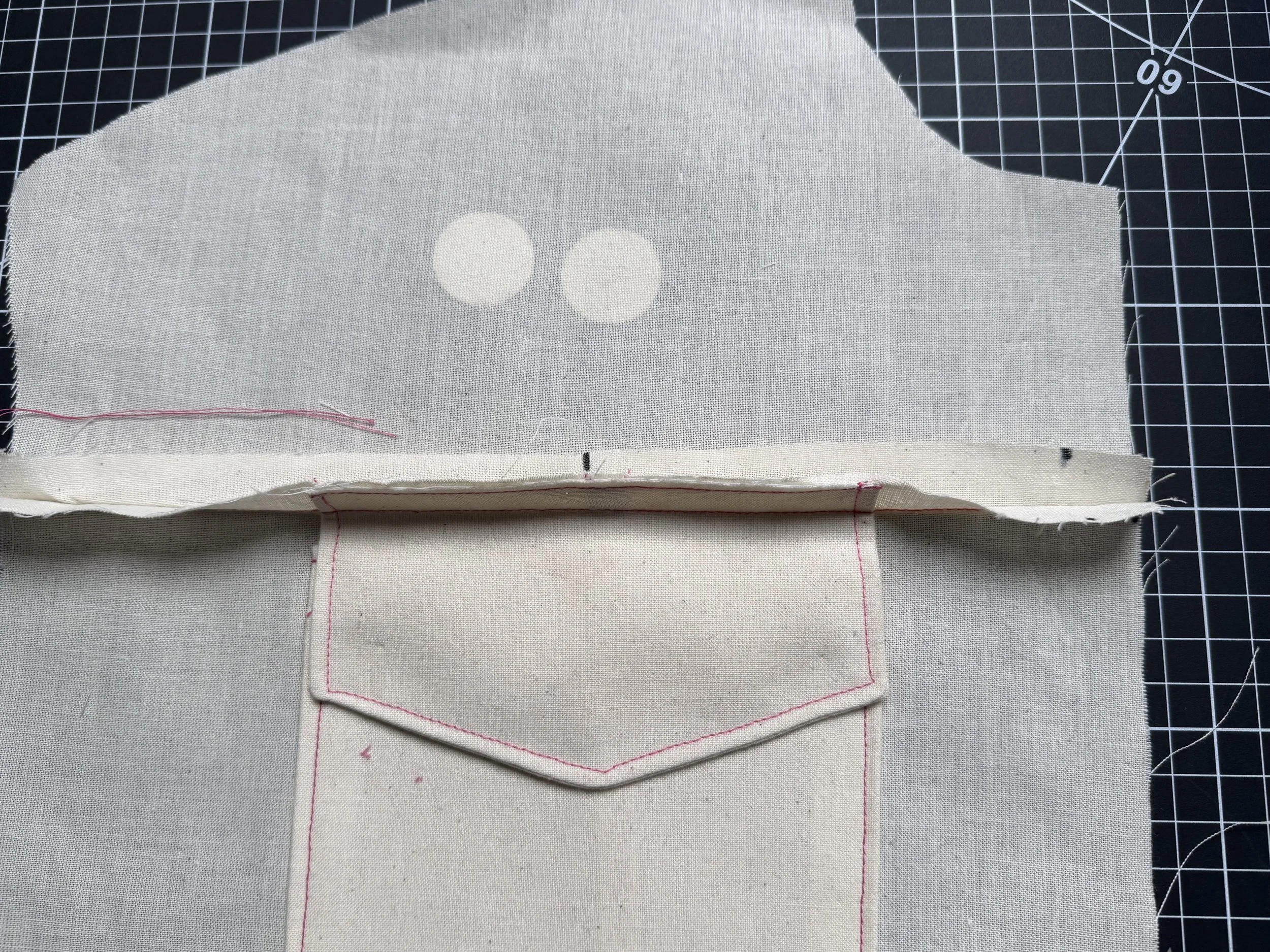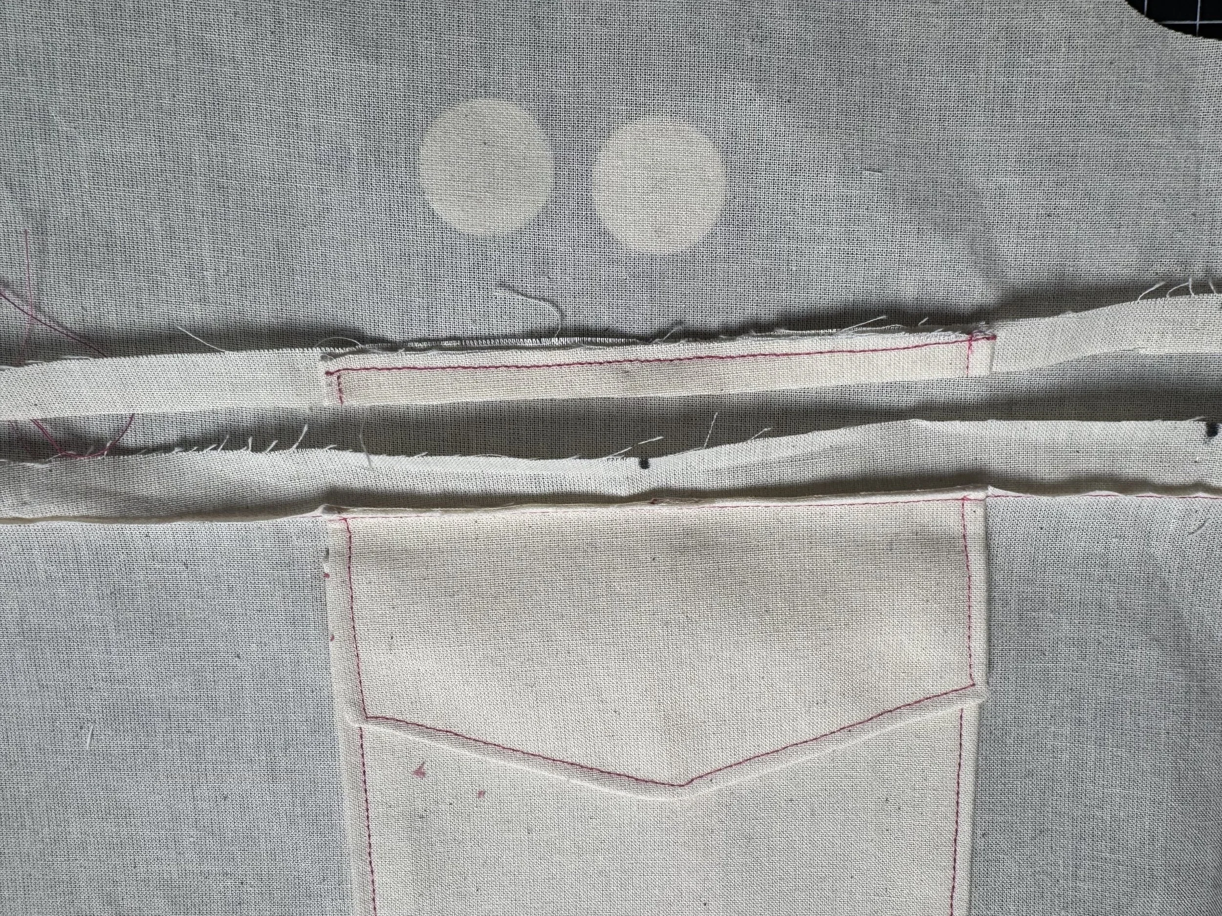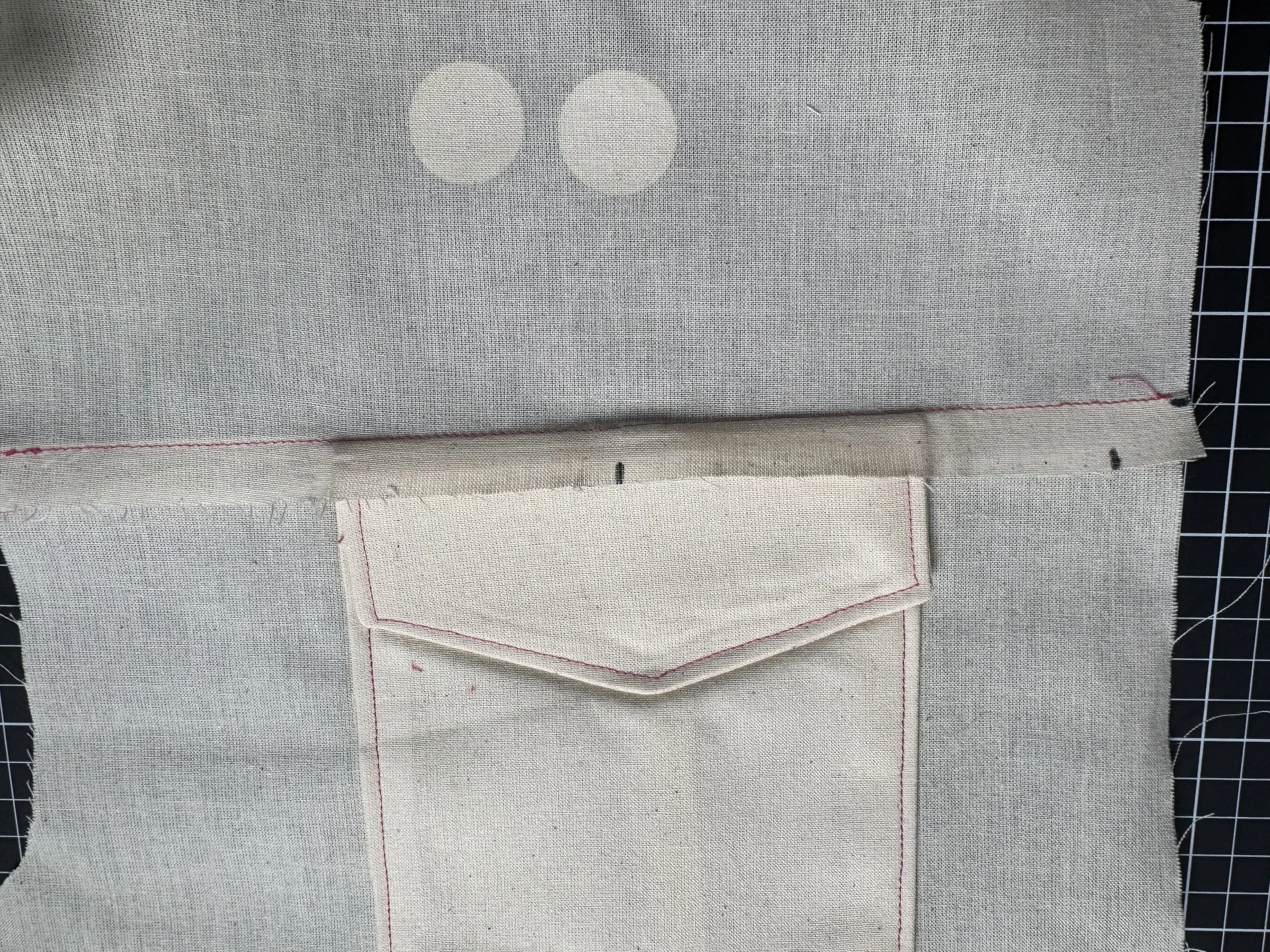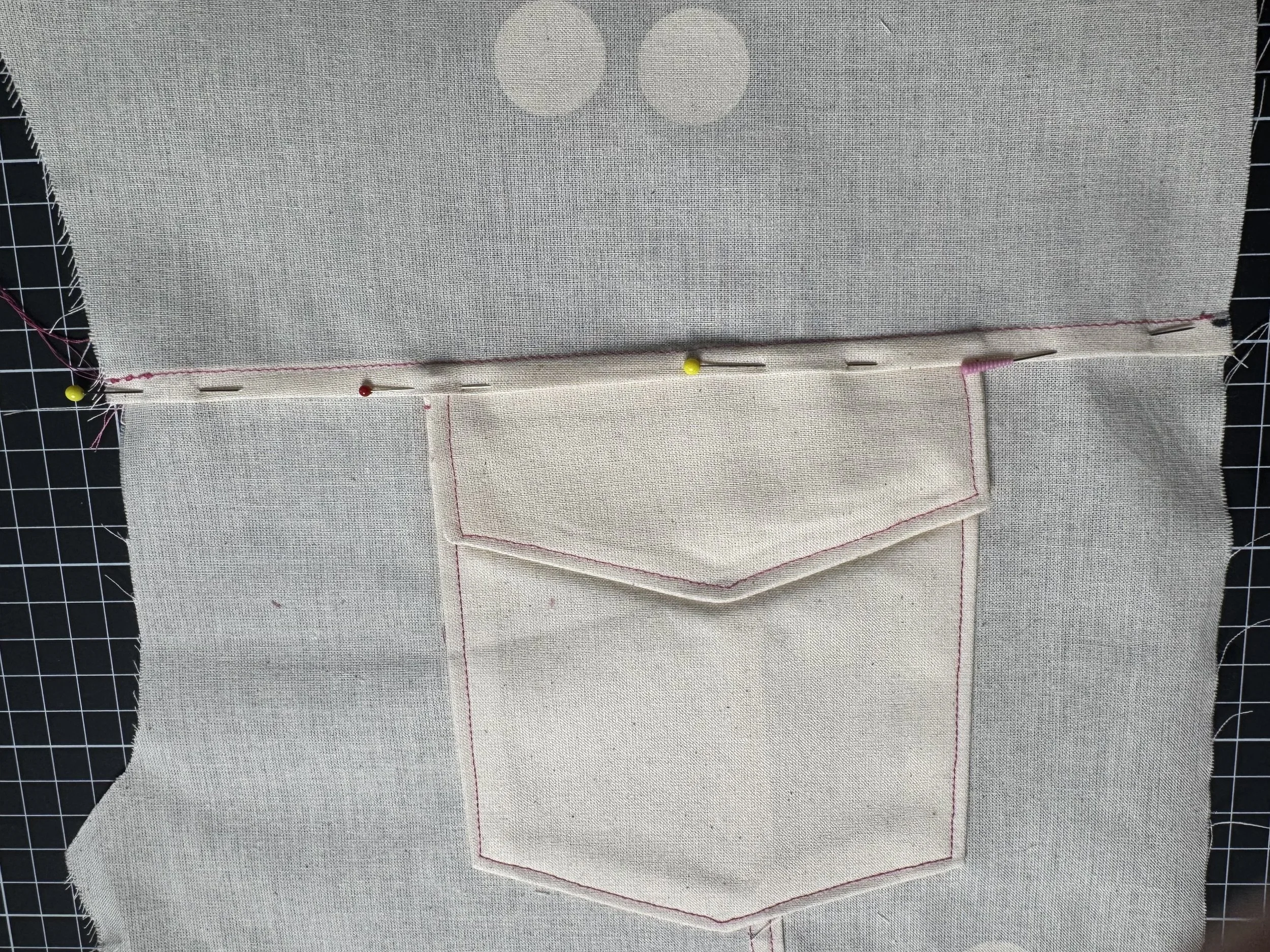 Place your flaps at the top of your front panels, aligned with the raw seams, make sure you have enough space between the two so the pockets are usable.