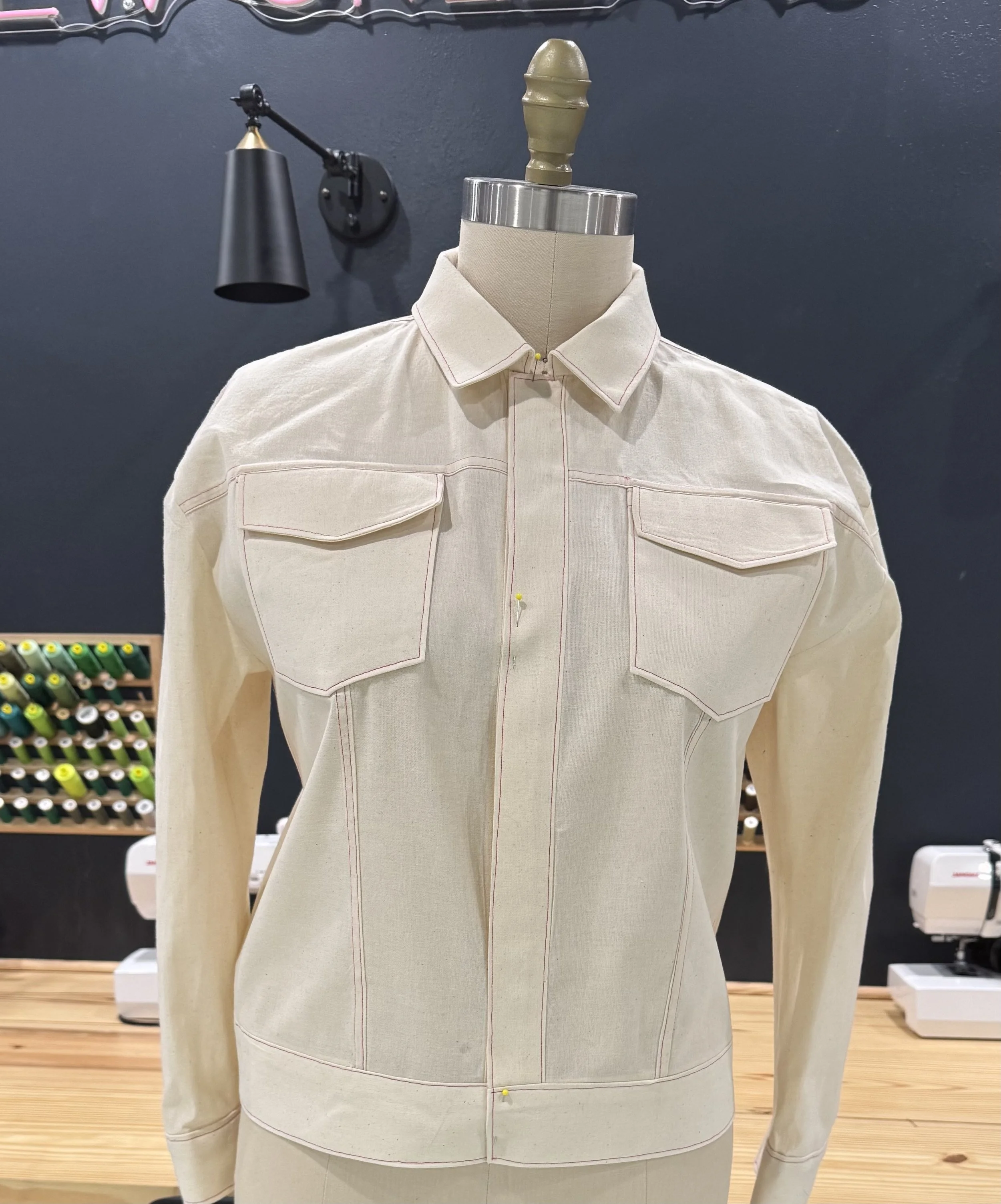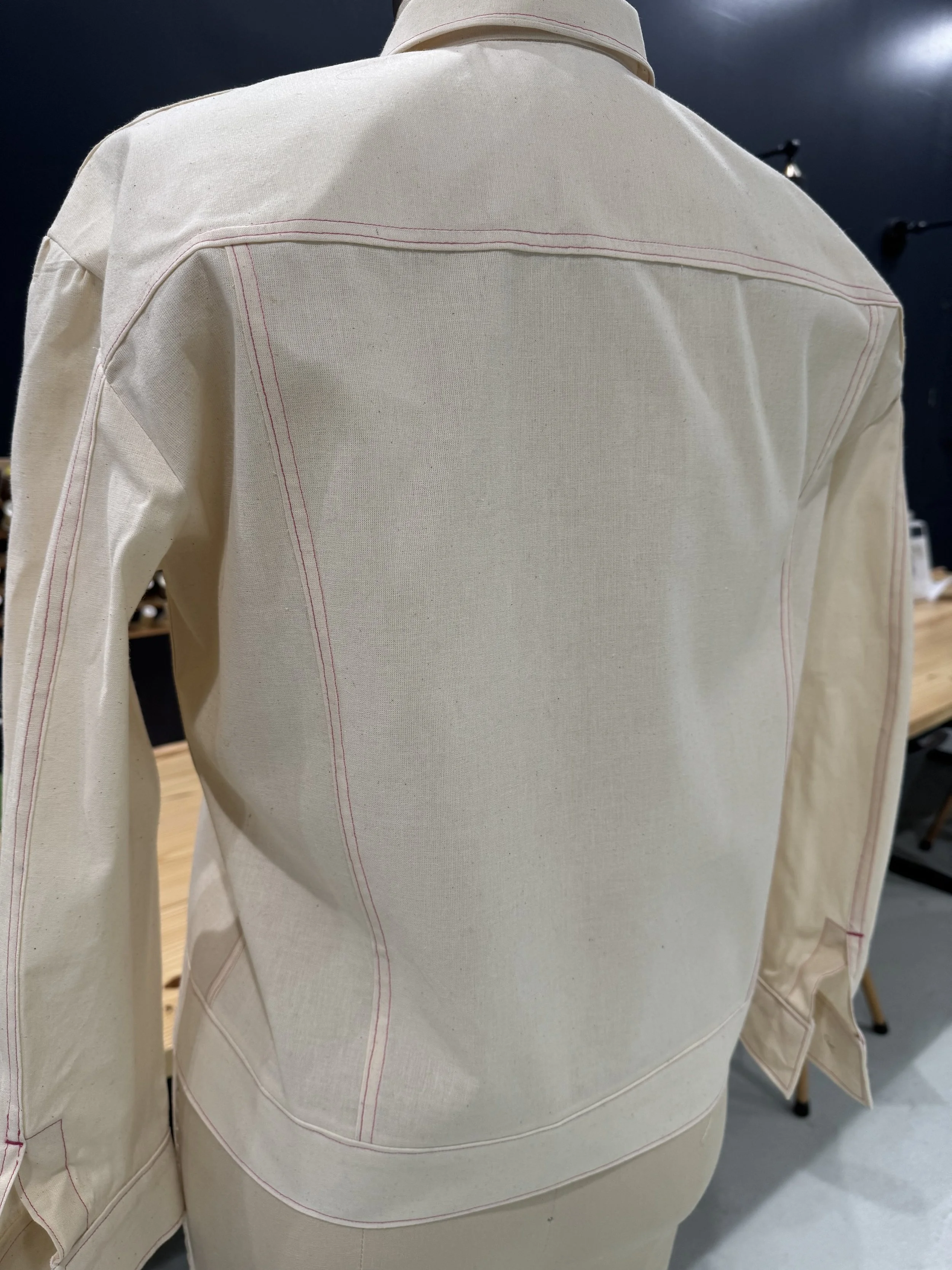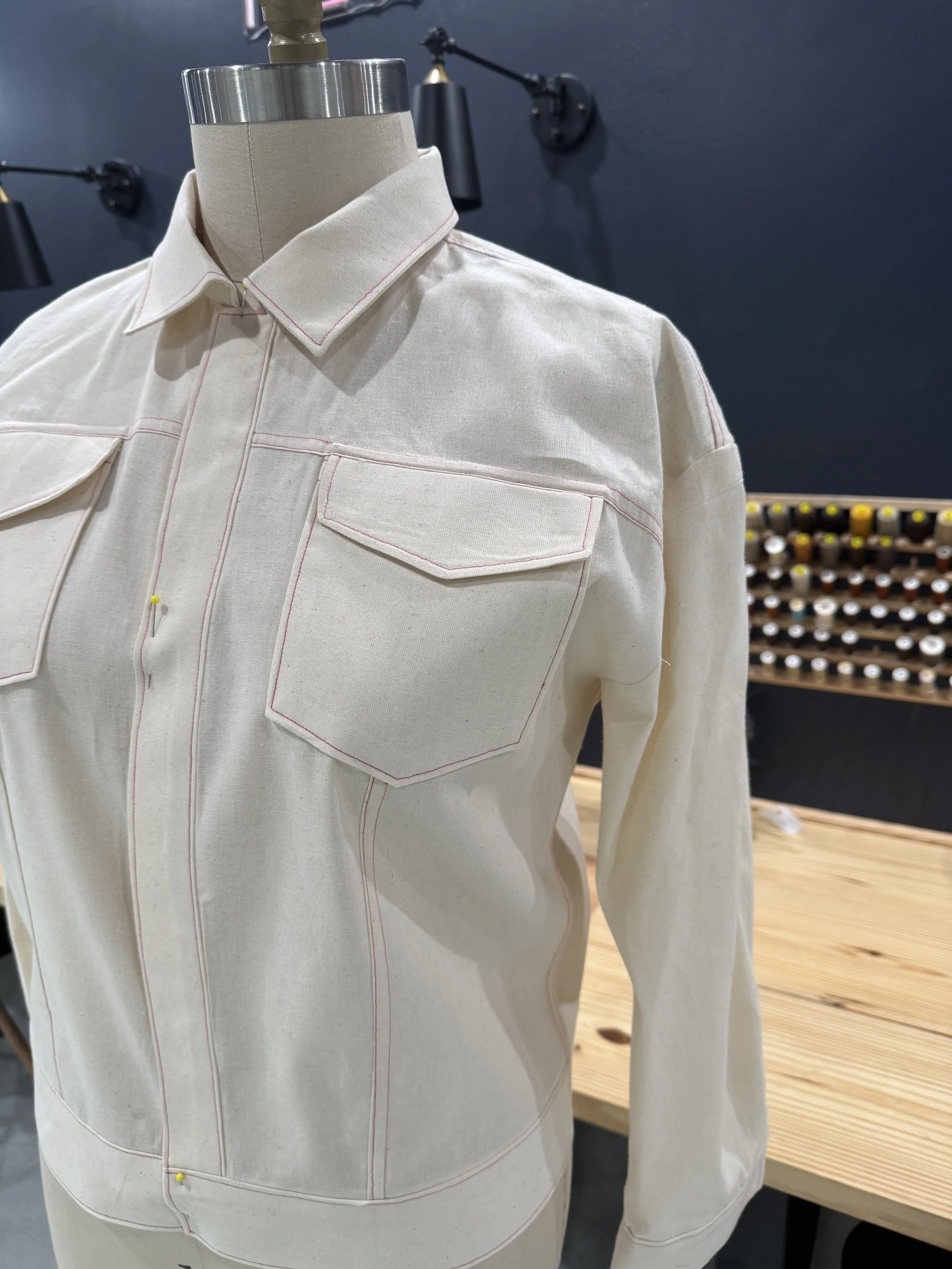 The Athena is a jacket with boyfriend vibes. It has more shaping and includes a higher sleeve cap and fabric blocking options.