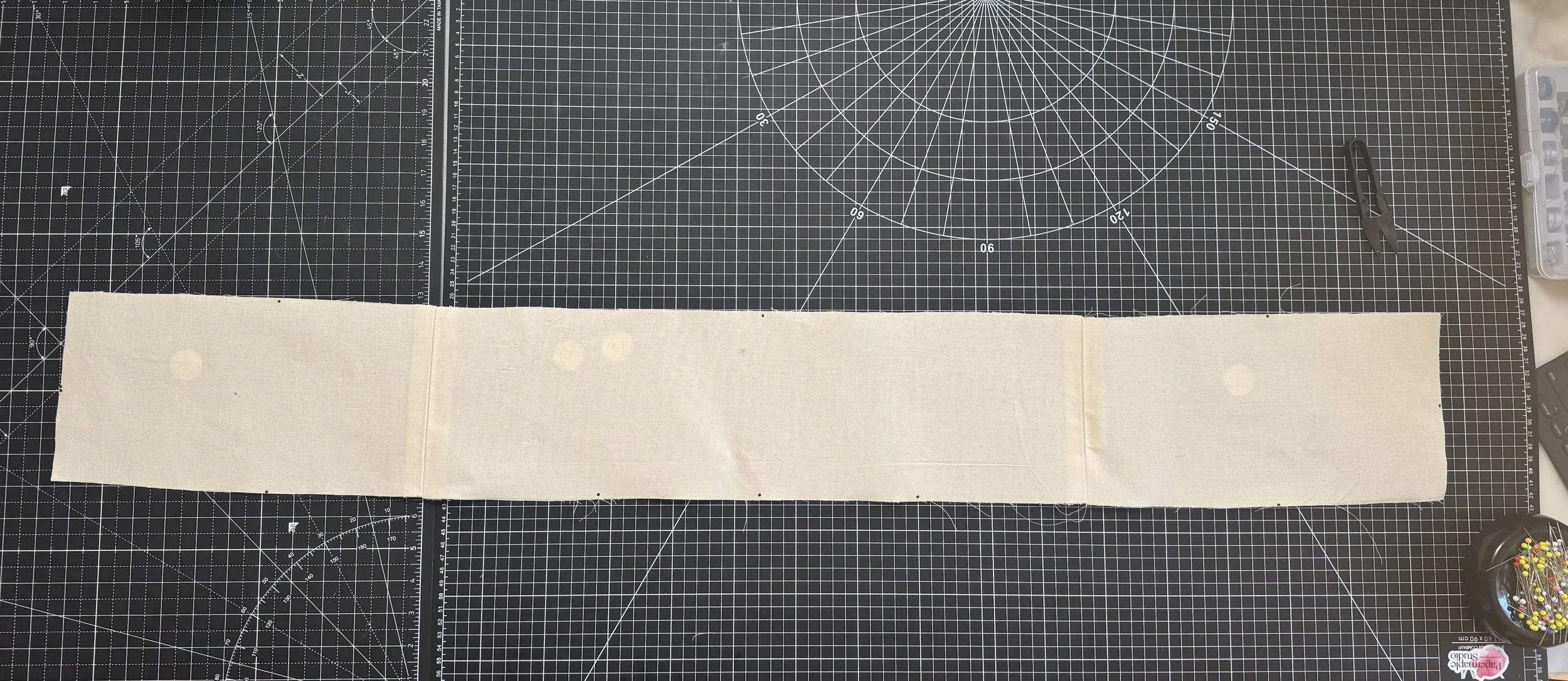 Find your center notches, and fold the length of the waistband in half, pressing it to create a permanent fold.