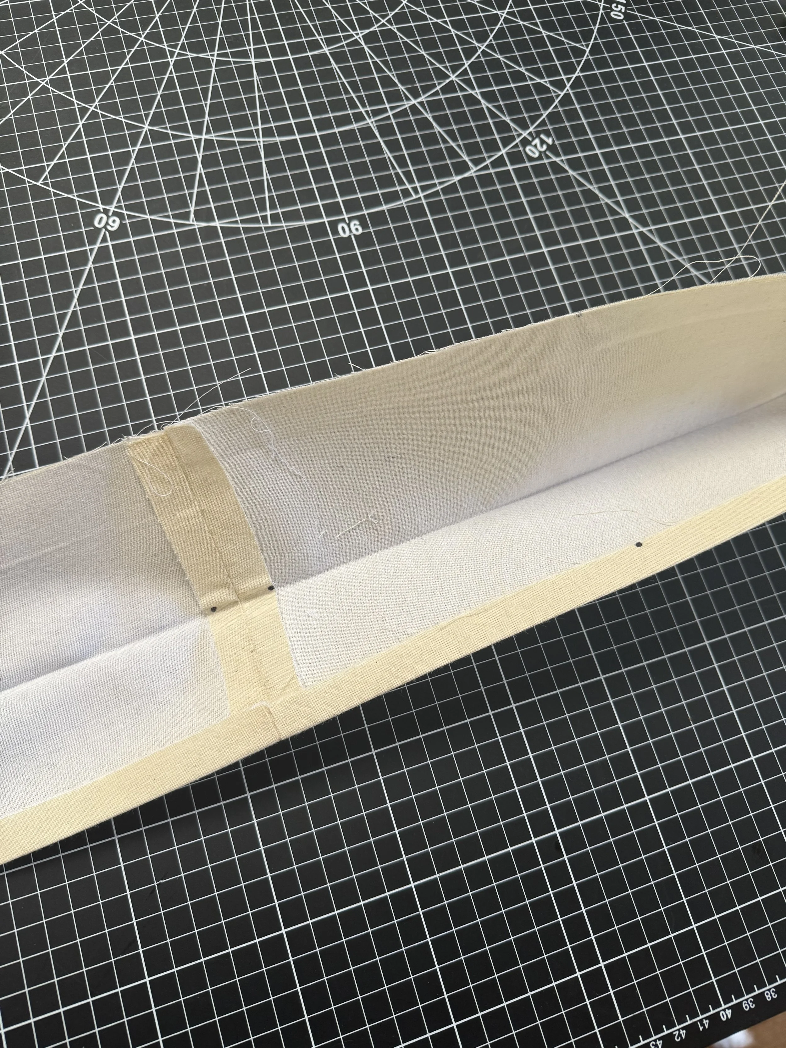 Pin your front band to your back band, and sew using a neutral thread at 5/8โ