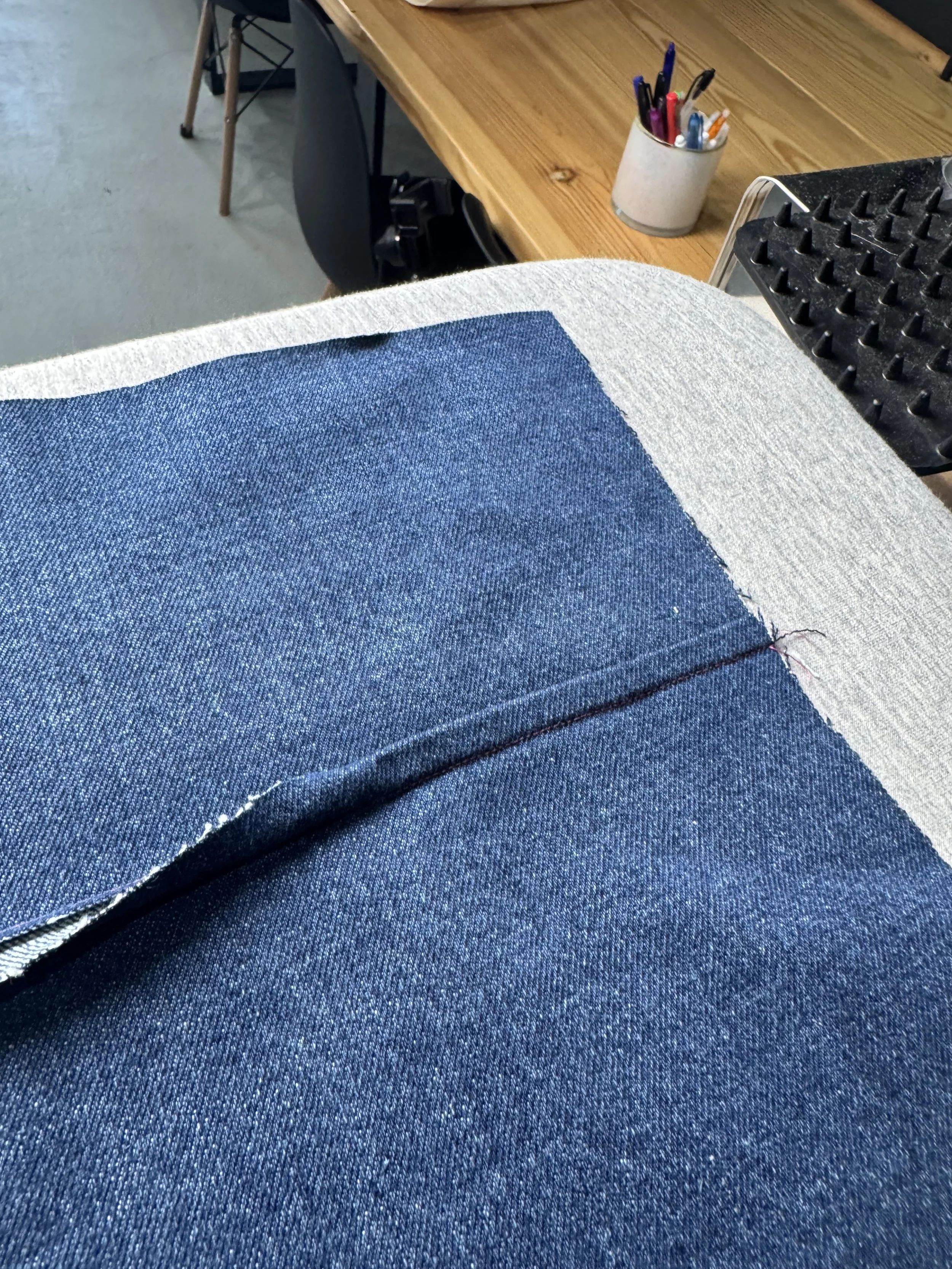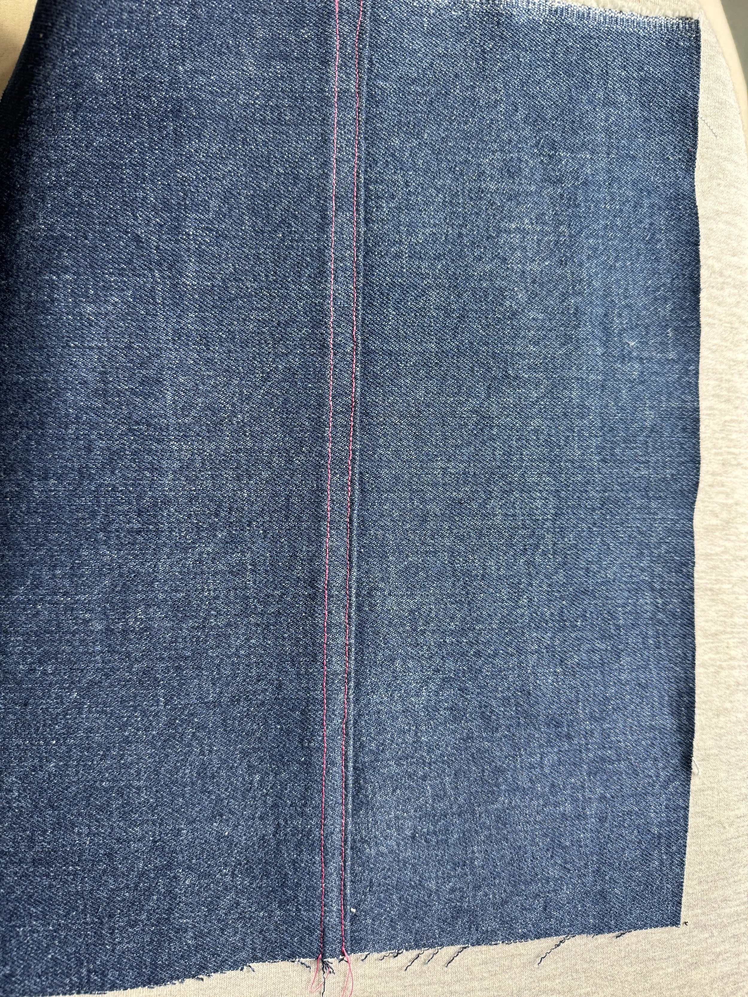 A flat fell is a strong seam with two lines of stitching showing on the right side that is produced by folding one raw edge under the other and stitching it flat or slip-stitching it on the wrong side.