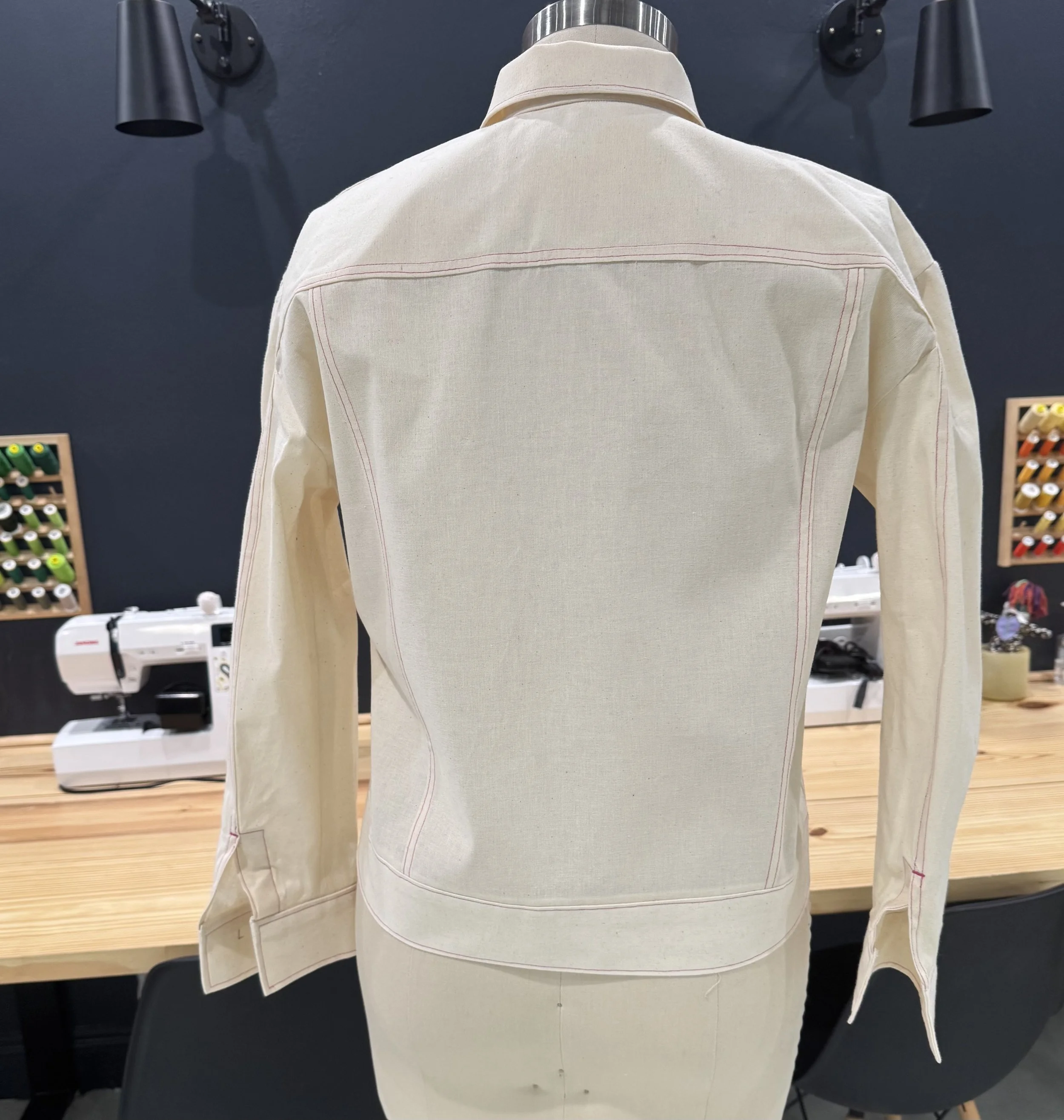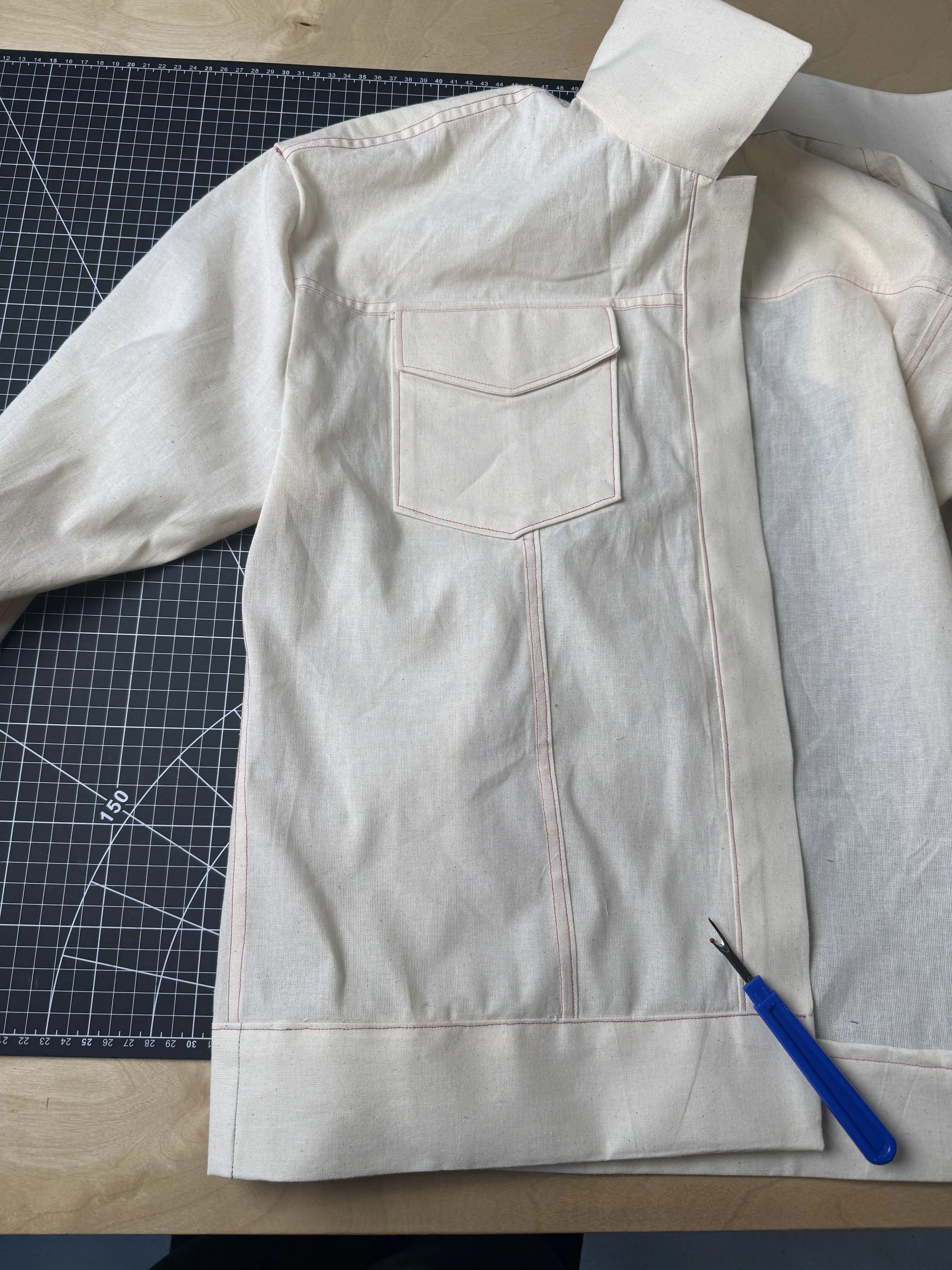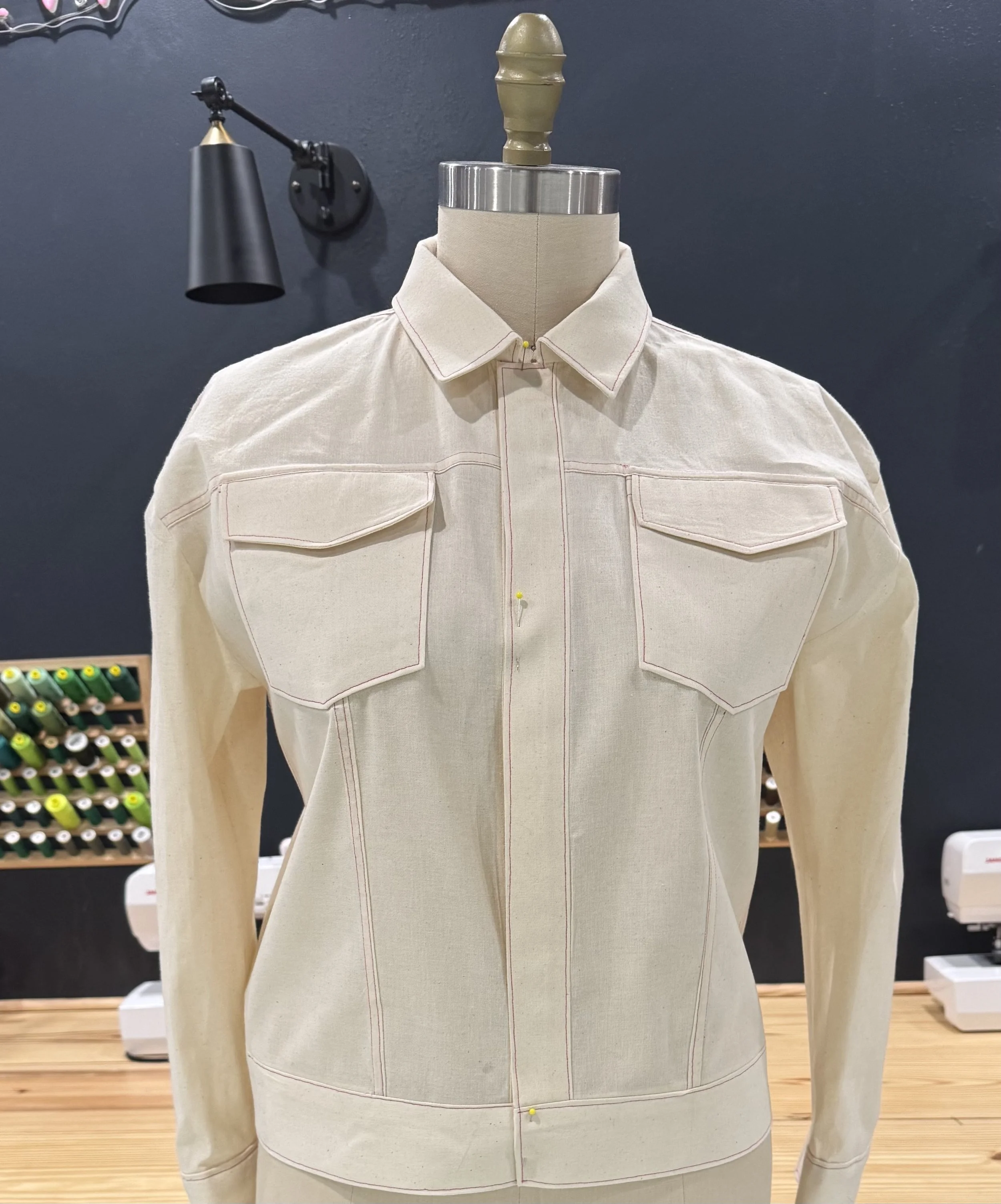 Try your jacket on again, pinning the placket closed and check the placement of your markings. If you like the placement then it’s time for buttonholes and buttons OR snaps.
